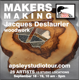 Jacques Deslauriers only uses dead or fallen trees from his Chandos property in his wonderful creations. Meet Jacques at the Apsley Studio Tour: he is always ready for a creative challenge of any size!