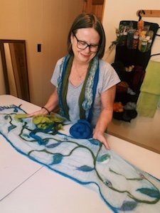 Early Monday morning at the beginning of July, my friend and I loaded up the car and enthusiastically made the trek to Haliburton. For the next 5 days, we would be driving the 1 hour and 9 minutes to the Haliburton Fleming College campus. It was a time to enjoy the beauty in nature (it really is a gorgeous drive), talk about life, and savour a great cup of coffee out of a travel mug. We were excited to embark on this year’s course in Wet Felting Techniques. Taught by a long time artist and Haliburton Studio Tour participant, I was curious to see what new skills and techniques I might learn. I was also looking forward to a very intense week, with creative juices flowing, and creating some new items to add to my collection for the Apsley Studio Tour!